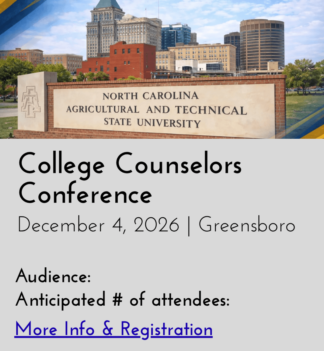 College Counselors Conference: December 4 in Greensboro