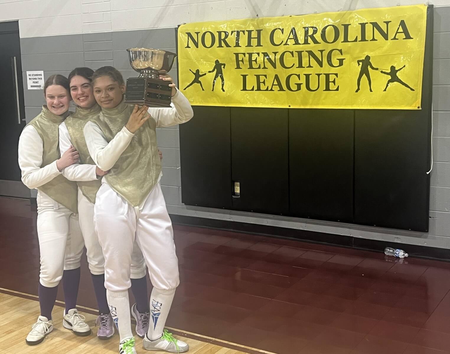 Winston-Salem, N.C. — Salem Academy’s foil team–Vanity McIlwain ’29, Grace McPhail ’26, and Erica Heuser ’29–claimed first place at the North Carolina Fencing League State Team Championships on Saturday, February 7, 2026, earning the state championship title after a dominant performance against teams from six other North Carolina schools.